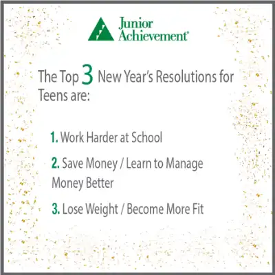 With 2019 nearly upon us, JA wanted to know if teens are making their resolutions for this upcoming year, and if so, what they were. According to a survey of 1,000 U.S. teens, conducted by Junior Achievement USA and ORC International, nearly 9 in 10 teens (88%) are planning on making New Year's Resolutions. The resolutions they are looking to achieve: